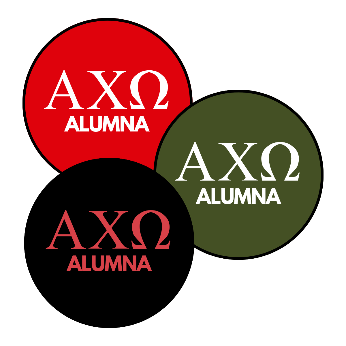 Alpha Chi Omega alumna— show your Alpha Chi Omega pride, Alum-style! Perfect for game days and Alumni Weekend, this button lets alums celebrate AXO in style.