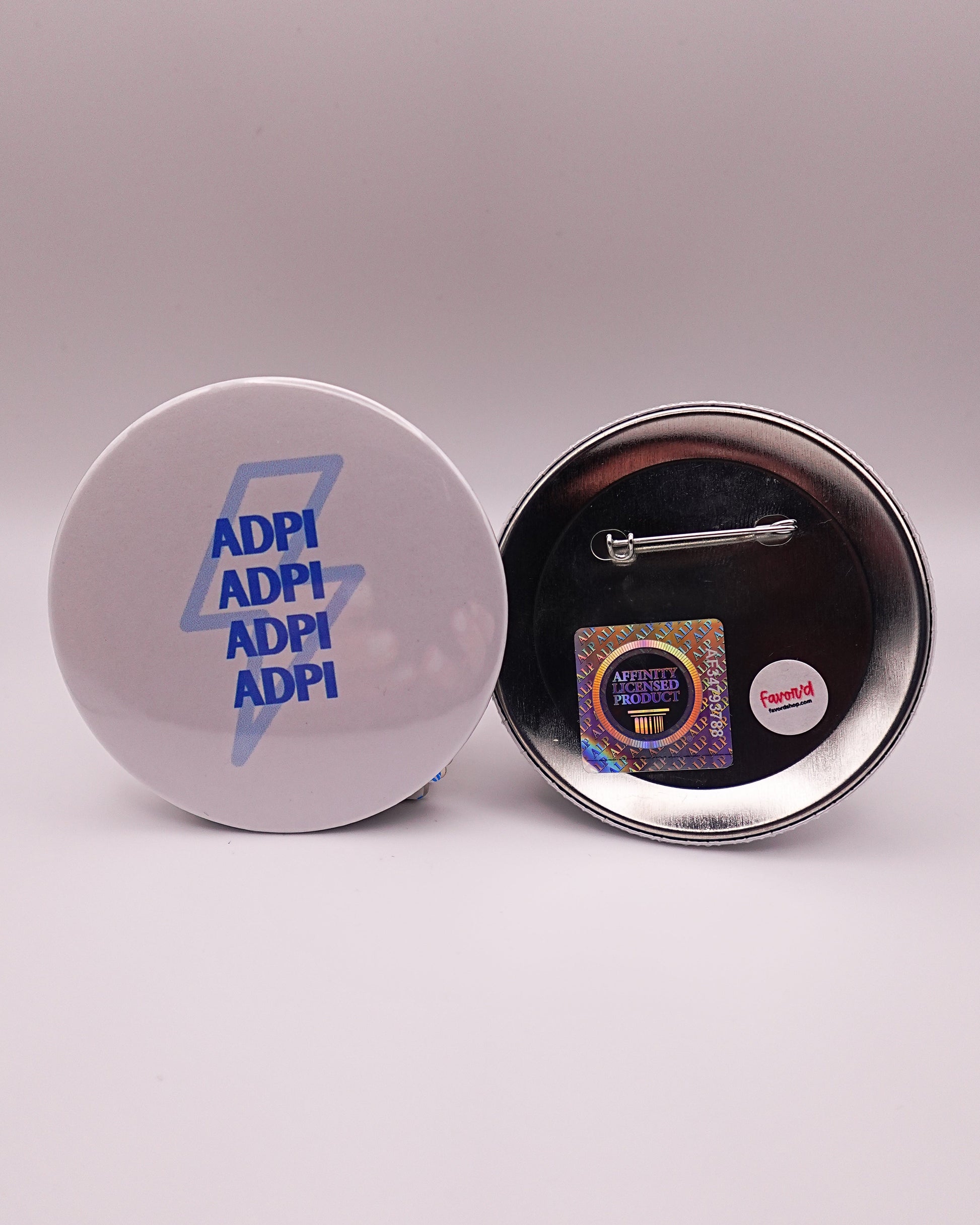 Alpha Delta Pi Lightning Bolt Button — spark your ADPi spirit with this bold and fun button! Rock it on game days, pin it to your backpack, or add it to your favorite decor. A must-have for showing your Alpha Delta Pi pride anywhere you go.