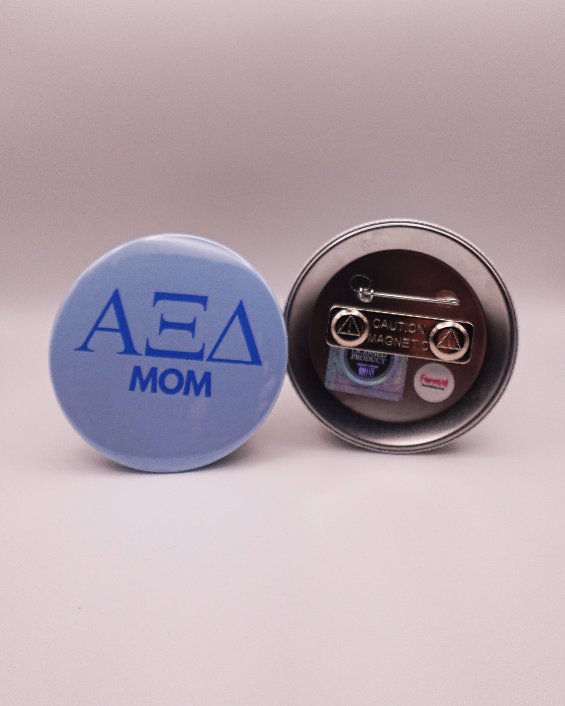 Alpha Xi Delta Mom — show your AXiD pride, Mom-style! Perfect for game days, Family Weekend, and Mom’s Weekend, this button lets mothers celebrate their Alpha Xi Delta daughters in style.