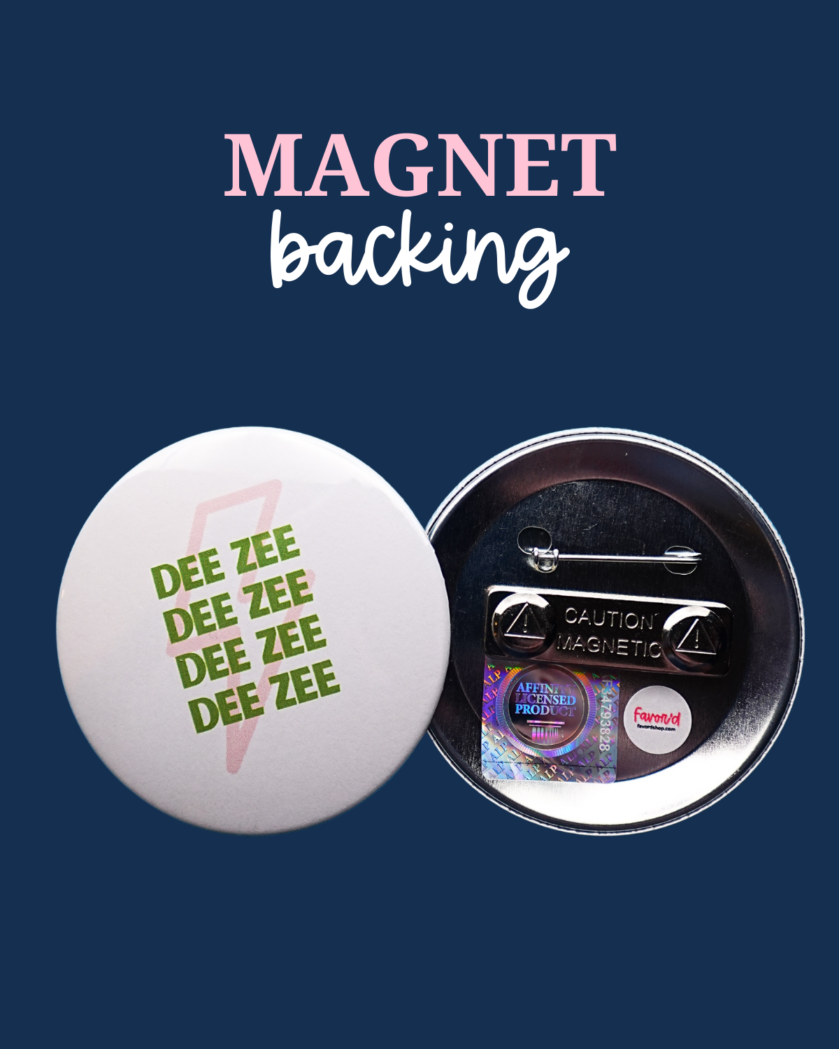 Available in classic metal pin or magnetic fastener.